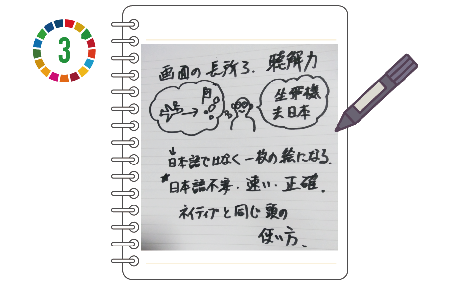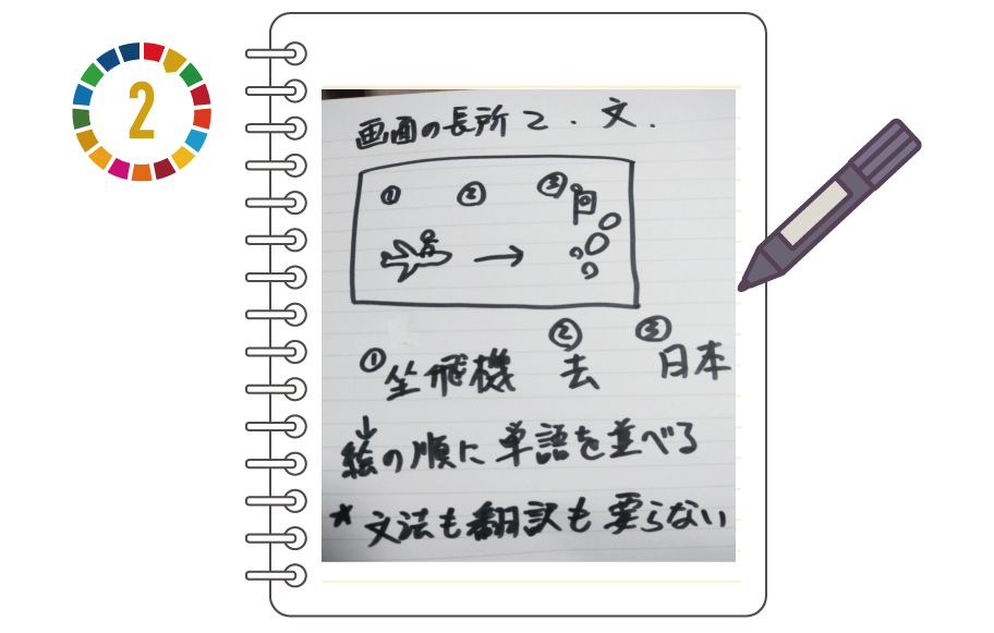 聞いた音を理解していれば絵にすることができ、日本語に訳すという手間も省けます。