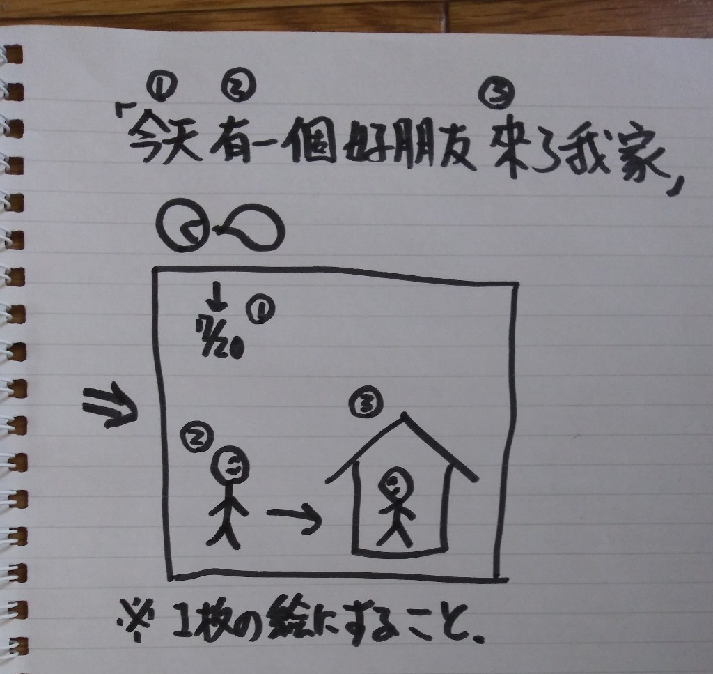 「①今天②下午兩點③有一個好朋友④來了我家」