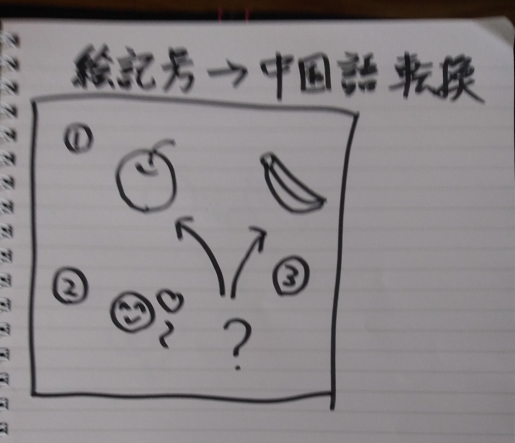 「絵記号から中国語を直接起ち上げる」練習をすれば、自然と日本語が邪魔になり封印できるようになります。